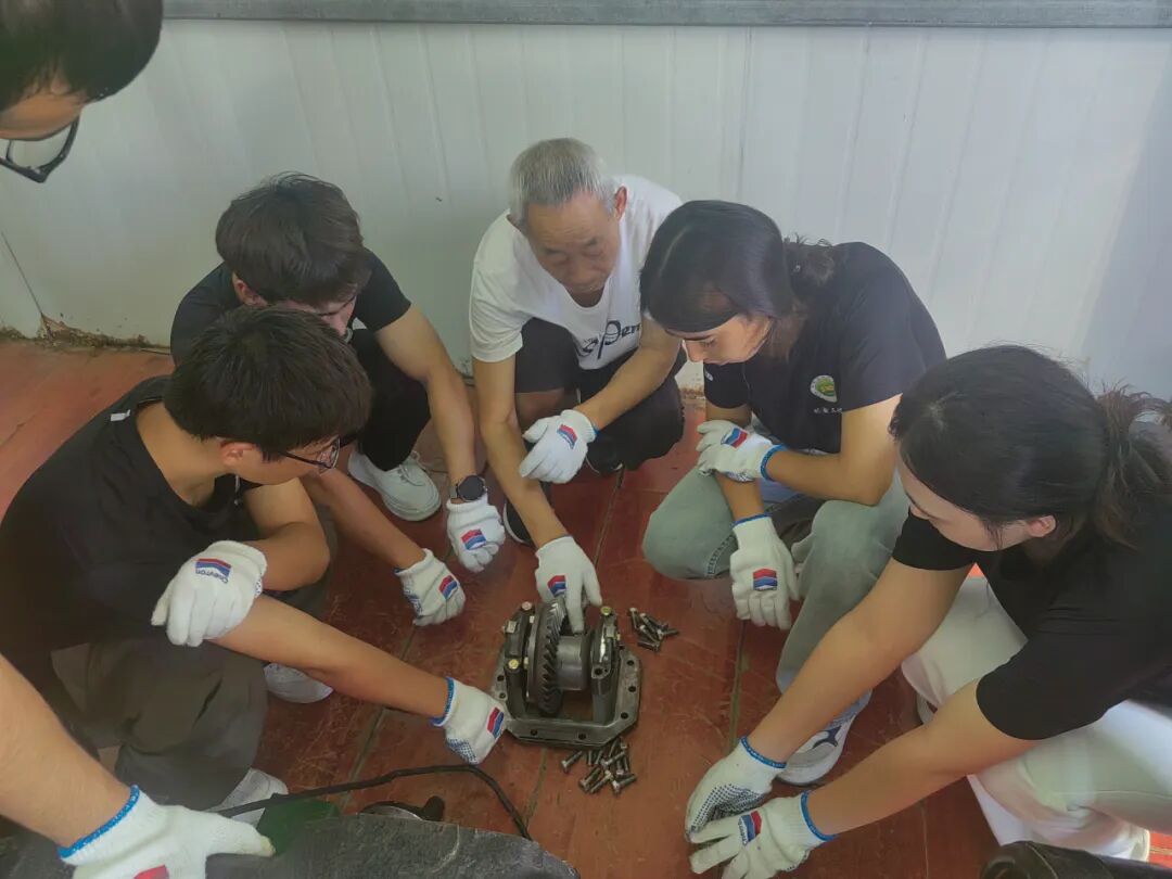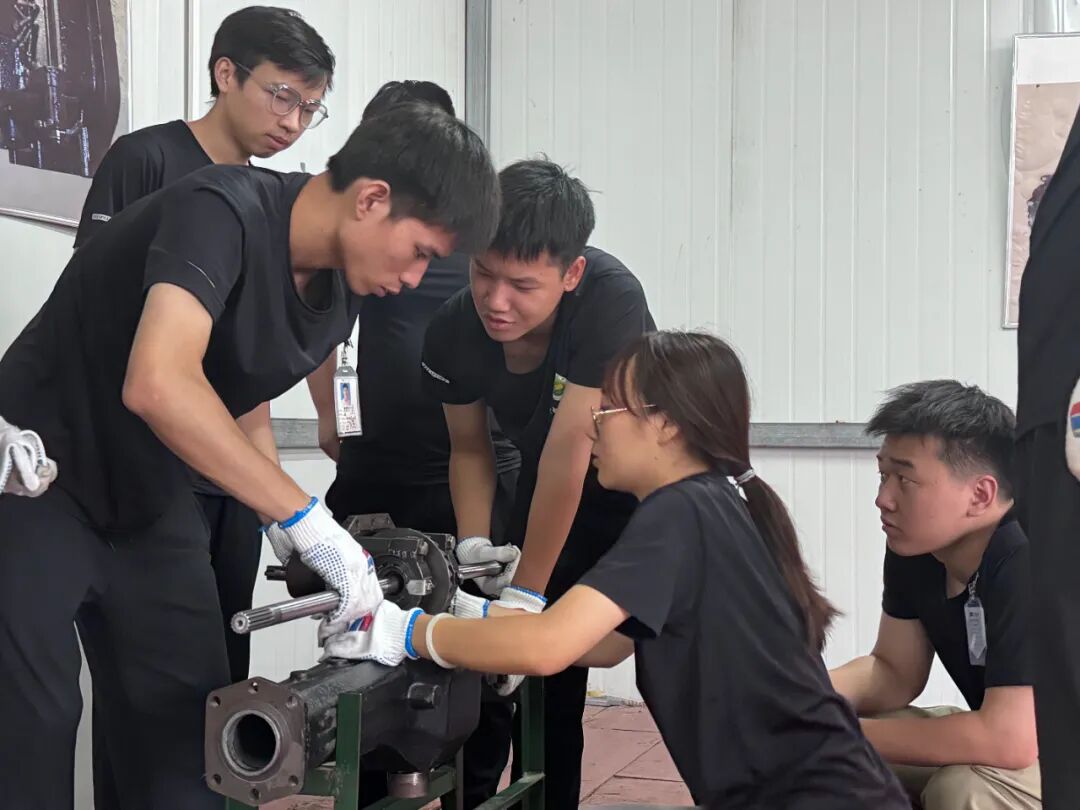 在柴油机和发动机拆装实习中,三位老师傅分别指导同学们动手拆装,并以问题引导的方法讲解了发动机、柴油机工作原理和关键零部件的结构和作用等,在拆装过程中,同学们遇到了一些问题,比如某个零件拆卸困难、安装时位置不准确等。但通过小组讨论和请教老师,同学们都一一解决了这些问题。这次拆装实习,不仅提高了同学们的动手能力,还培养了同学们的团队协作精神和解决问题的能力。