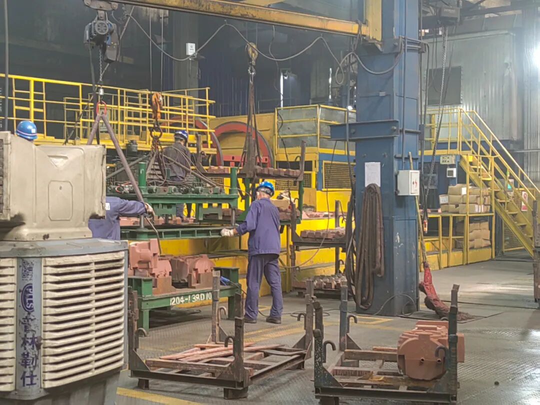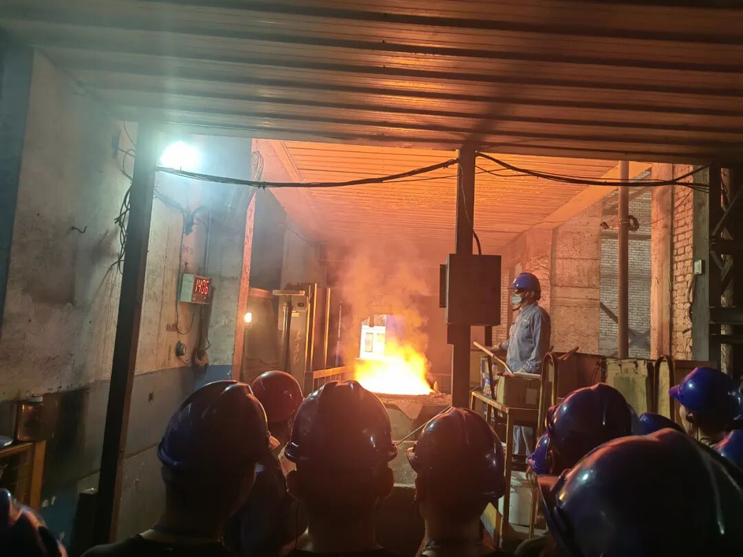 洛阳一拖集团铸造厂是中国大型铸锻件生产基地,在师傅的带领和现场讲解下,同学们深入了解了造型(制芯)——熔炼——浇注——清理的铸造工艺,从原材料的准备到模具的制作,再到金属的熔炼和浇注,每一个环节都需要严格地控制和精准地操作。在这里,同学们看到了金属的熔炼和浇注过程,熔炉中的金属液在高温下翻滚着,散发着耀眼的光芒,师傅们熟练地操作着设备,这个过程需要高度的专注和精准的控制,稍有不慎就可能导致铸件出现缺陷。